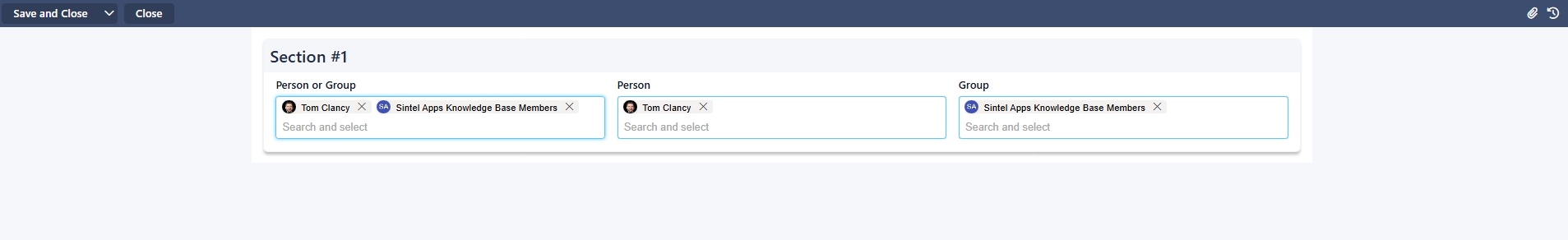 This article explains how Person, Group, and Person or Group fields work in the Sintel Apps Designer, how to configure them, and when to use each type.