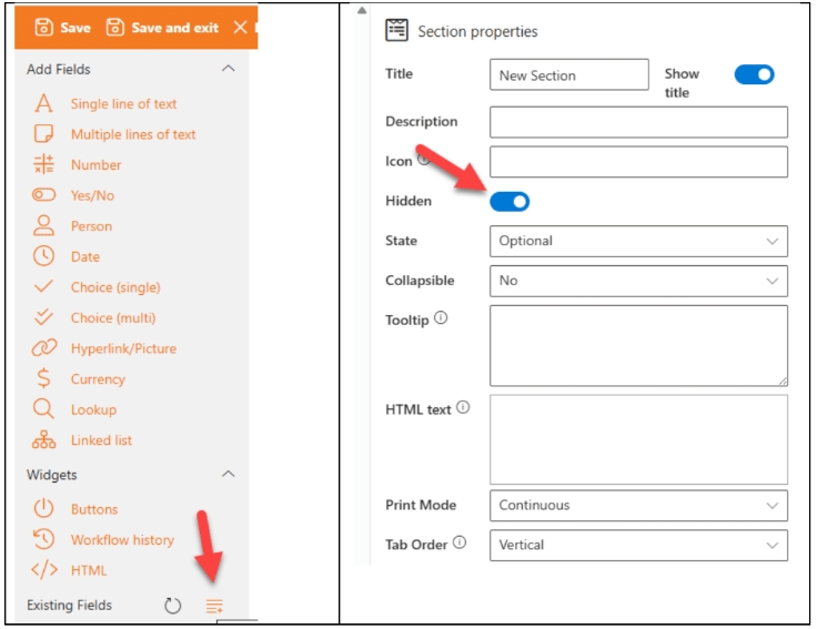 Sintel Forms contained a step named “Disable or hide features”. The step included 9 options but Sintel Apps only supports 7 at this time. External Sharing and Item history are not support yet.