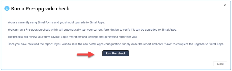 As soon as your form is selected, you will be prompted to run the Pre-upgrade check.