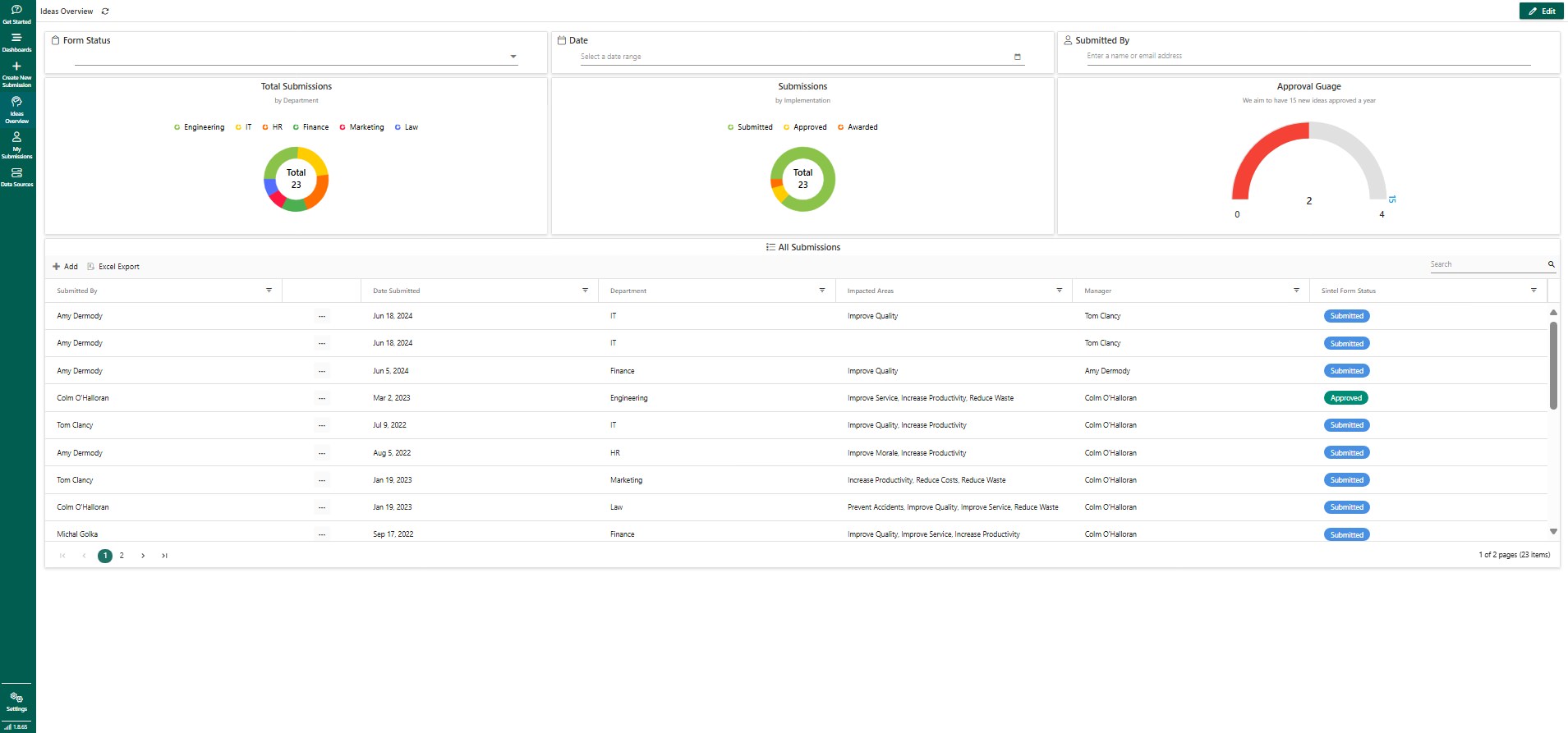 This template can be used to capture ideas from employees including the areas the idea can impact and the implementation plan. The Employee Ideas App can be used to capture ideas from employees including the areas the idea can impact and the implementation plan. It can also be used to flag the best ideas for awards to drive continuous improvement. It has a preconfigured Layout and you can add a Workflow or additional Logic.